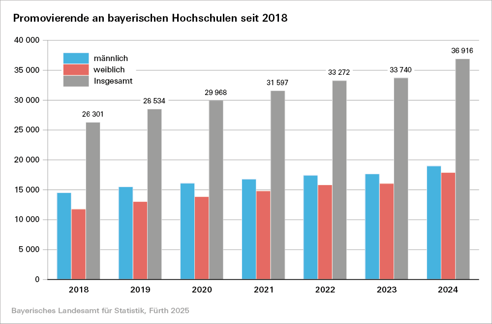 36 916 Promovierende im Jahr 2024 in Bayern