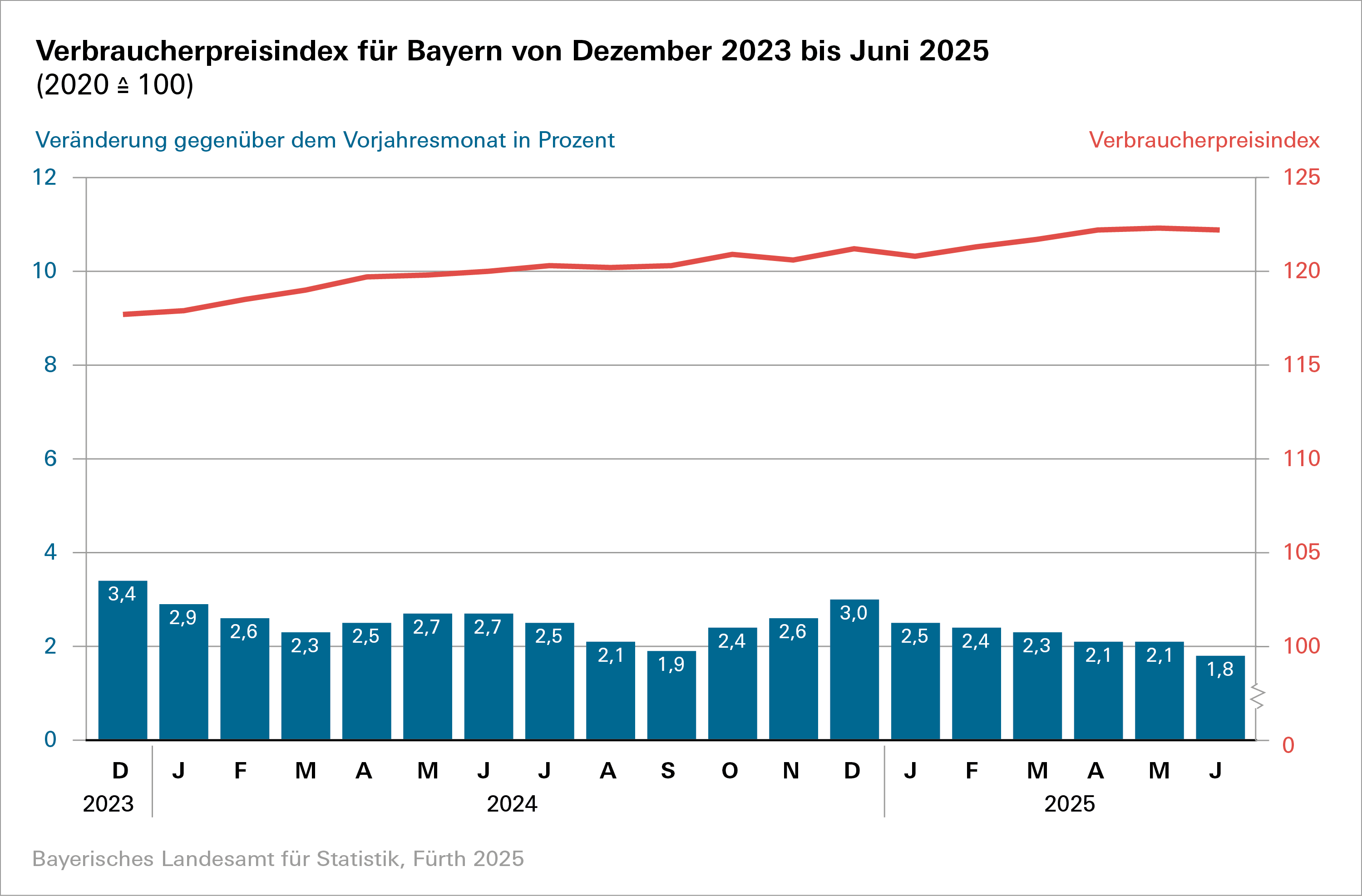 Inflation in Bayern liegt im Juni 2025 bei 1,8 Prozent