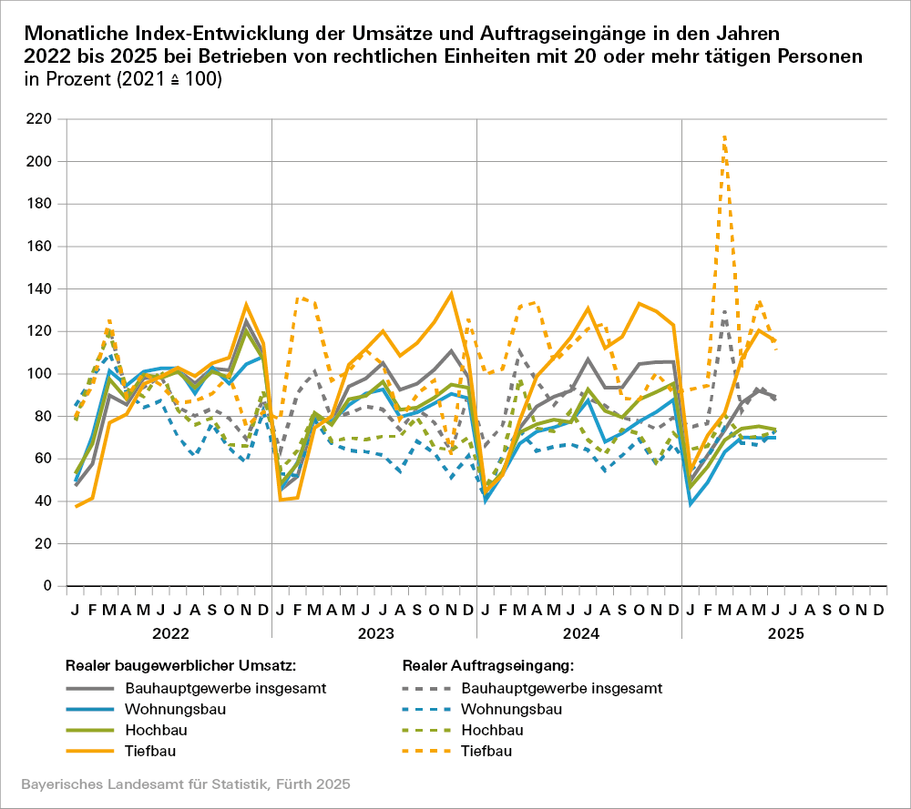„Bauhauptgewerbe in Bayern im Juni 2025“ (Bestellnummer: E2100C 202505).
