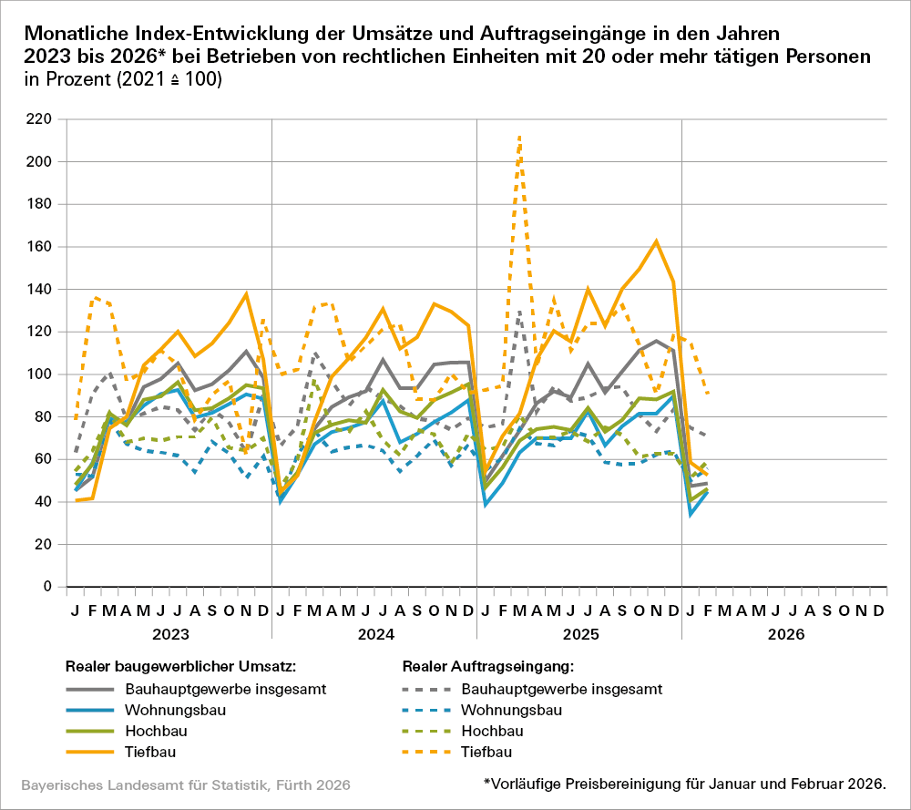 „Bauhauptgewerbe in Bayern im Februar 2026“ (Bestellnummer: E2100C 202602).