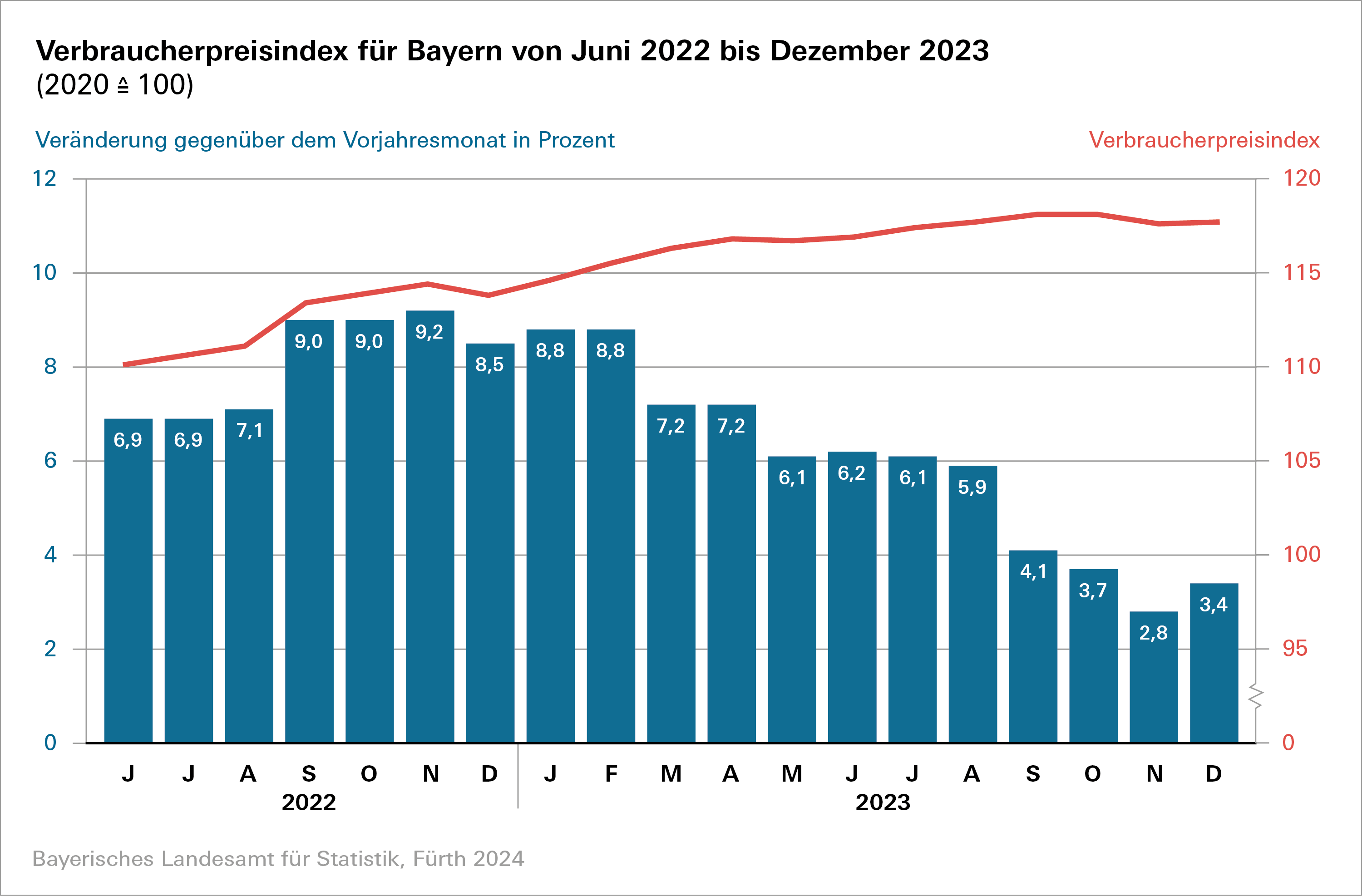 Inflation in Bayern im Dezember 2023 bei 3,4 Prozent