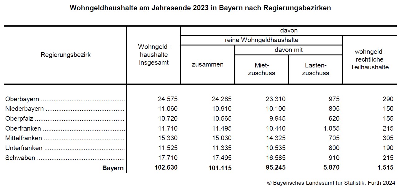Reine Wohngeldhaushalte in Bayern steigen um 77,2 Prozent zum Jahresende 2023