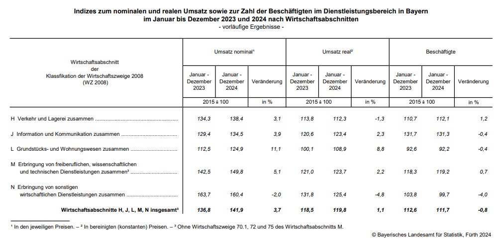 Umsatz der bayerischen Dienstleister steigt im Jahr 2024 nominal um 3,7 Prozent und real um 1,1 Prozent