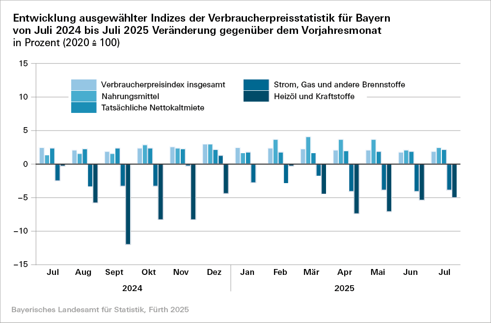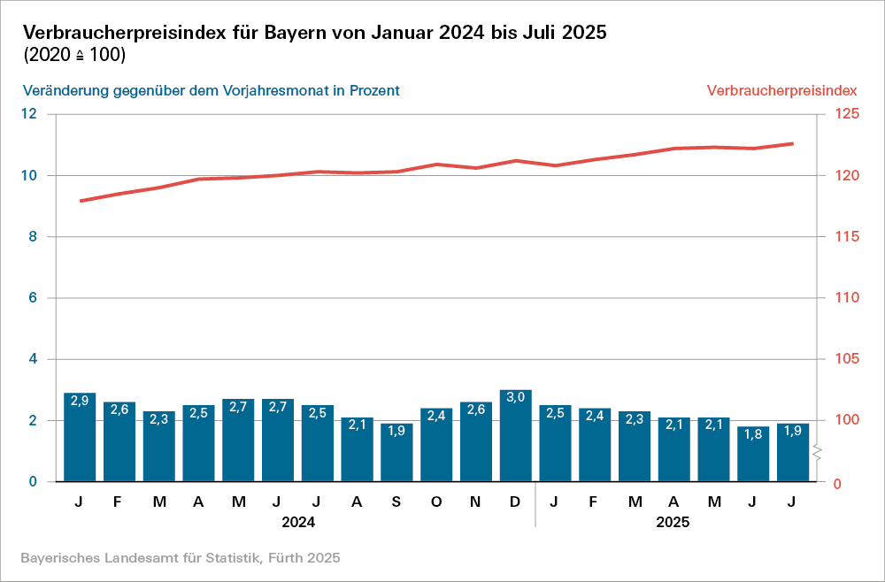 Inflation in Bayern liegt im Juli 2025 bei 1,9 Prozent