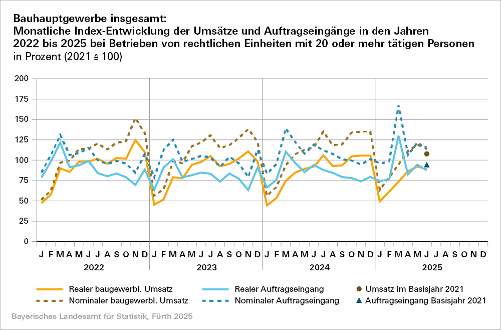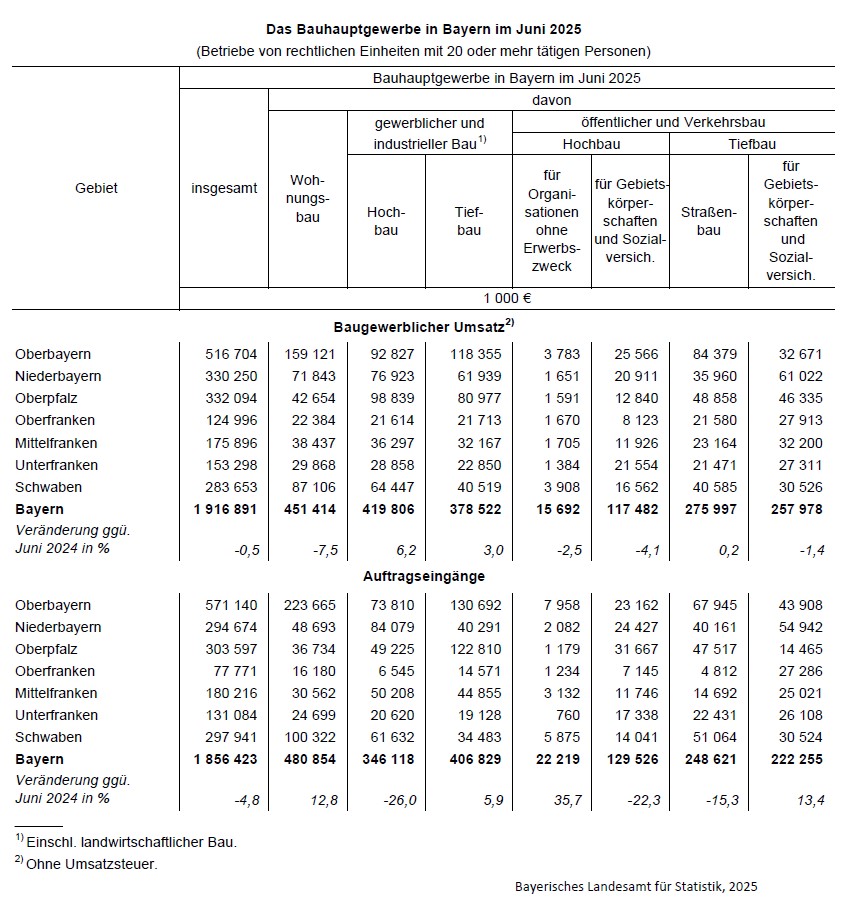 „Bauhauptgewerbe in Bayern im Juni 2025“ (Bestellnummer: E2100C 202505).