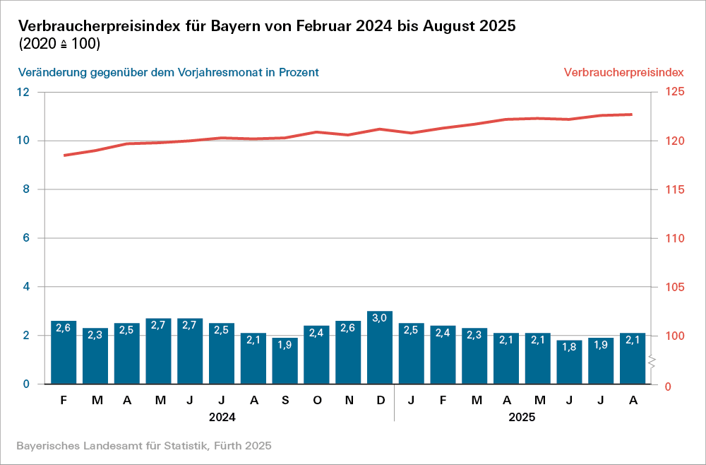 Inflation in Bayern liegt im August 2025 bei 2,1 Prozent