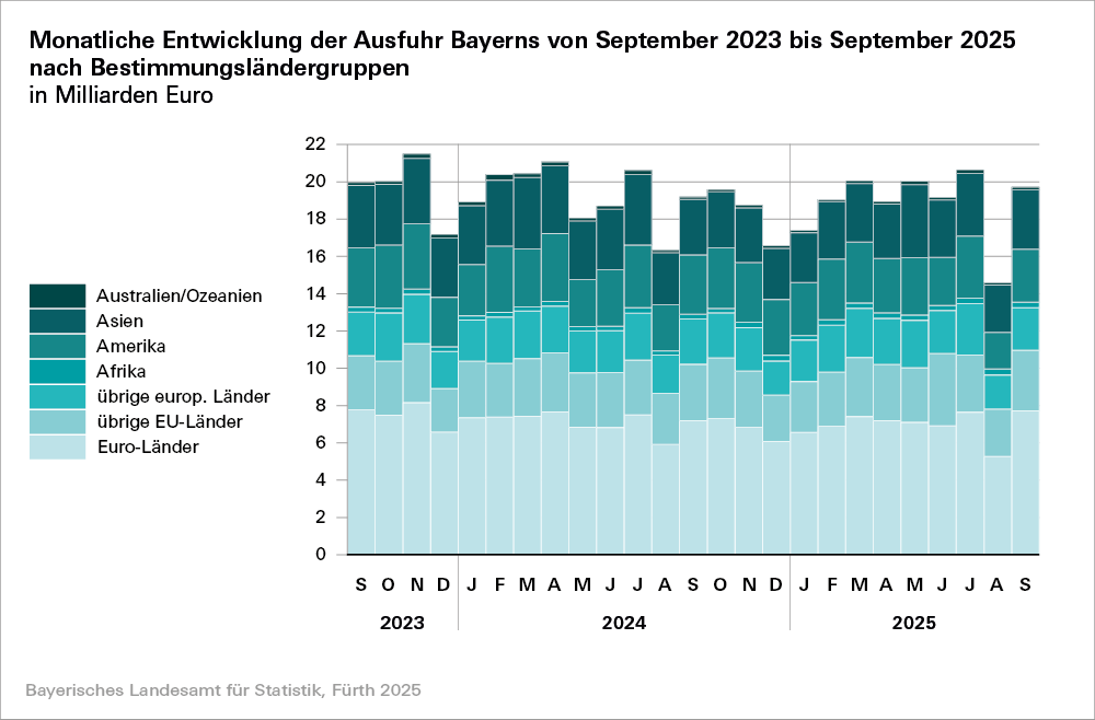 Monatliche Entwicklung der Ausfuhr Bayerns nach Bestimmungsländergruppen
